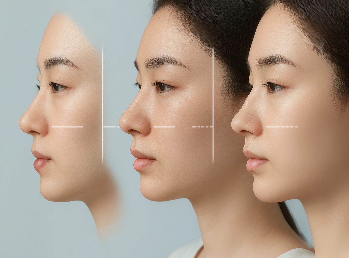 Hidung terlalu panjang memberikan kesan menua, sementara hidung terlalu pendek terlihat kurang proporsional. Kami menyesuaikan panjang hidung dengan presisi sepertiga proporsi vertikal wajah.